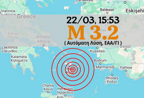 Τρεις σεισμικές δονήσεις σημειώθηκαν το μεσημέρι του Σαββάτου (22/03) στην Αρκεσίνη της Αμοργού.