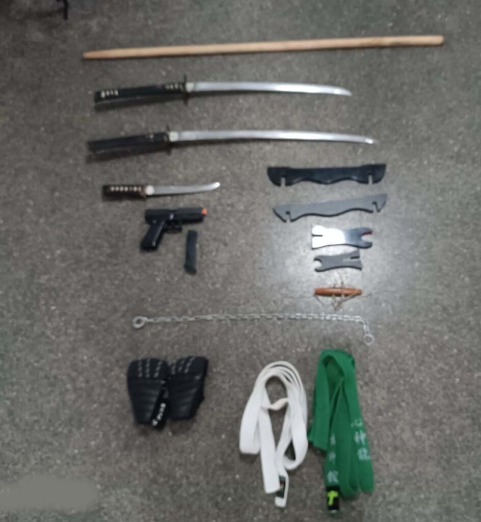 - δύο (2) σπαθιά τύπου κατάνα,