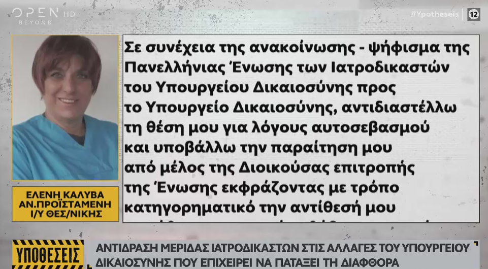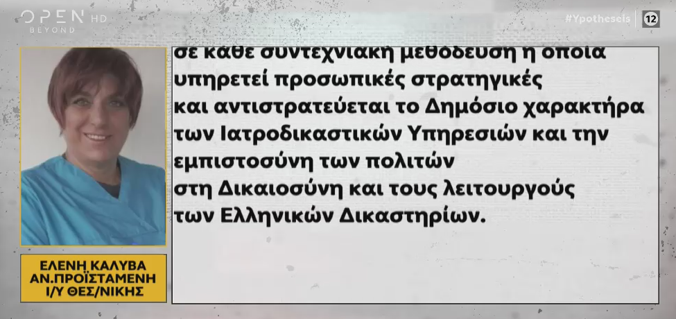 Ηχηρή εντύπωση προκαλεί η παραίτηση της ιατροδικαστή Θεσσαλονίκης κας Ελένης Καλύβα, της οποίας η ανακοίνωση μοιάζει περισσότερο με καταγγελία, καθώς μιλάει για “συντεχνιακή μεθόδευση” και “προσωπικές στρατηγικές”.