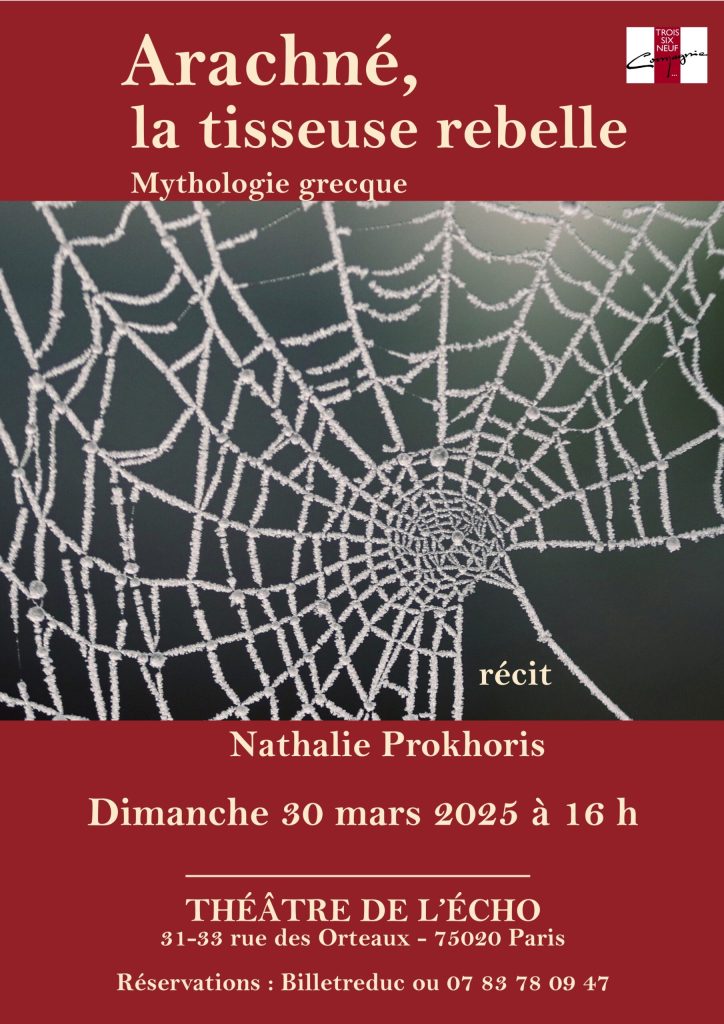 Arachné, la tisseuse rebelle Mythologie grecque avec Nathalie Prokhoris Arachné, la rebelle au talent fou, défie Athéna en un combat singulier sur son propre terrain, le tissage. Sous le regard médusé de la déesse, la tisseuse aux doigts d’or déroule le récit des amours des Dieux. Quelle maîtrise ! Mais quelle impudente audace, qui provoquera la colère d’Athéna.