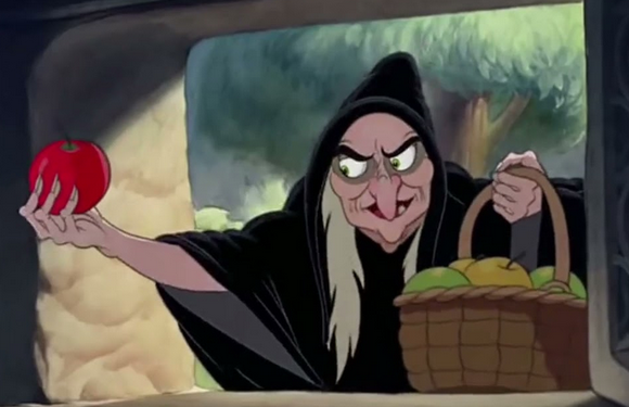 4) Η Χιονάτη τρώει το μήλο διότι η μεταμορφωμένη βασίλισσα της έχει πει ότι το μήλο είναι μαγικό και θα πραγματοποιήσει την ευχή που θα κάνει η Χιονάτη. Η Χιονάτη εύχεται για τον πρίγκιπά της.
