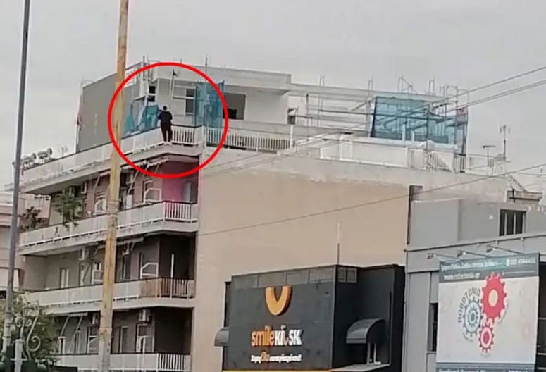 Η γυναίκα βρίσκεται στην ταράτσα πολυκατοικίας επί της οδού Λαμπράκη.