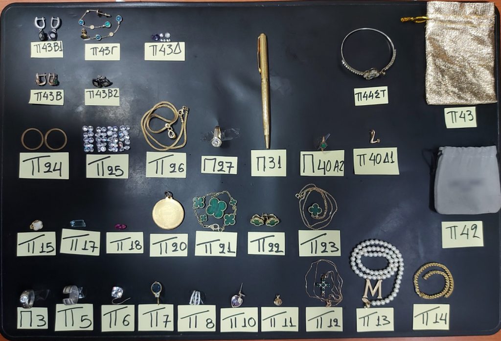 Τα κοσμήματα βρέθηκαν στην κατοχή ενός ατόμου, σε βάρος του οποίου σχηματίστηκε δικογραφία για ληστεία σε κοσμηματοπωλείο στην Χαλκιδική τον Οκτώβριο του 2017.
