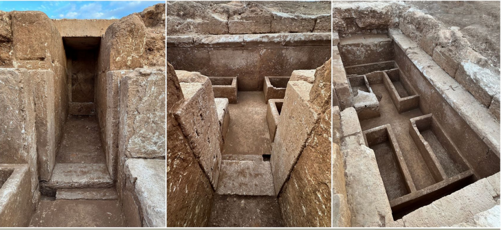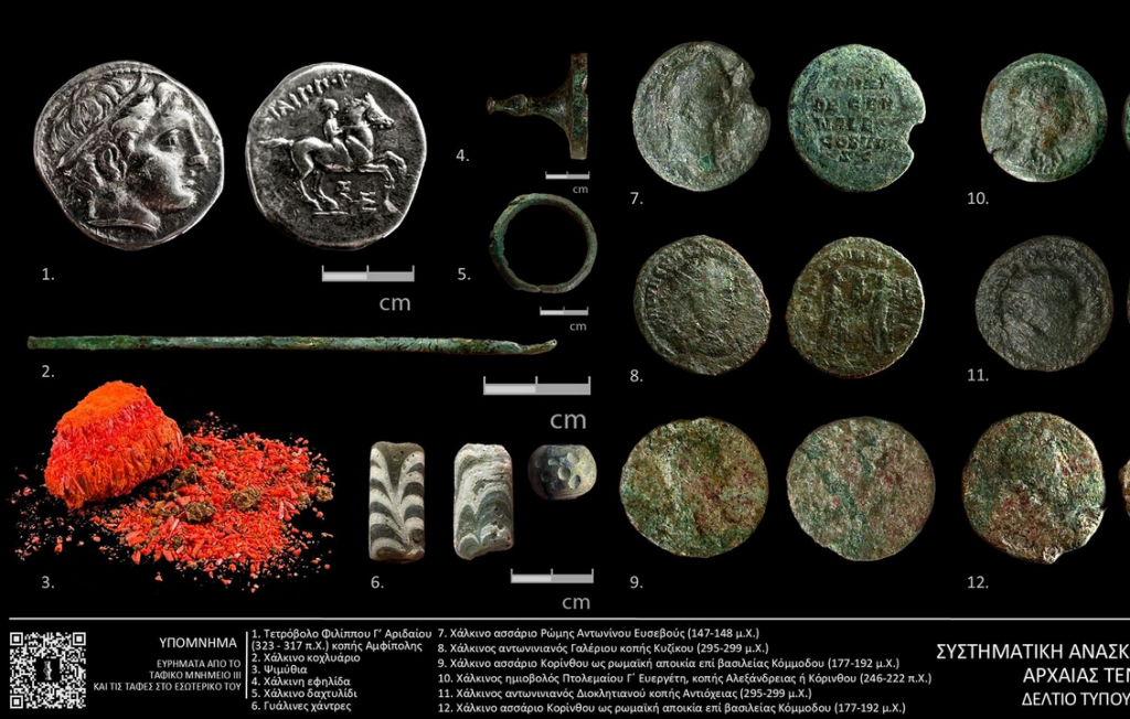 Φέτος για πρώτη φορά αποκαλύφθηκε στην Κορινθία μνημειώδες ταφικό κτίσμα ελληνιστικών χρόνων κατά τα πρότυπα των μακεδονικών τάφων (Εικ. 1). Τα ευρήματα δε από το εξωτερικό (Εικ. 2) και το εσωτερικό του παραπέμπουν ξεκάθαρα στη μακραίωνη χρήση του και σε λατρεία που συνδέεται με την ίαση.