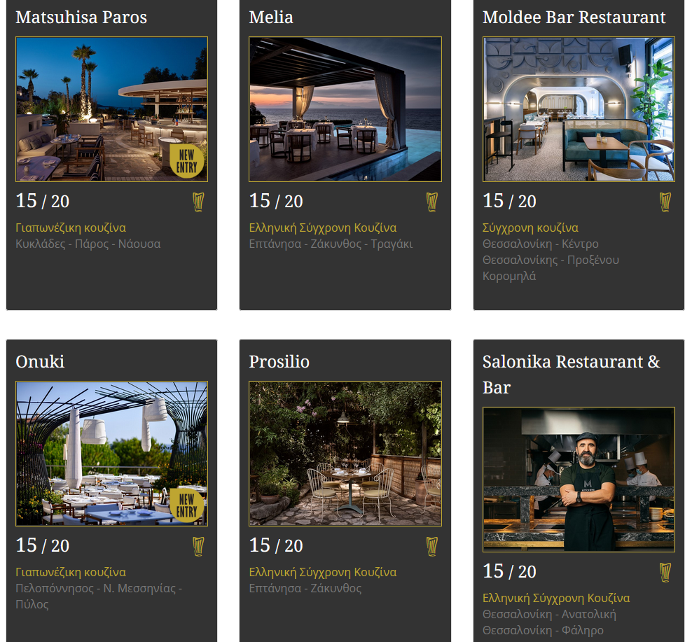 Στη Θεσσαλονίκη χρυσό σκούφο πήραν το Moldee Bar Restaurant και το Salonika που βρίσκονται Προξένου Κορομηλά και Φάληρο αντίστοιχα.