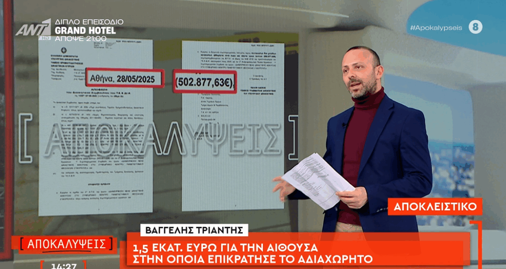 Όπως αποκάλυψε η εκπομπή “Αποκαλύψεις”, το μεσημέρι της Δευτέρας (23/03), στις 31/05/2024 είχε εγκριθεί για την αίθουσα από το Υπ. Δικαιοσύνης το ποσό των 1.110.000 εκ. ευρώ ενώ υπήρξε και συμπληρωματική έγκριση ποσό της τάξεως των 502.877 ευρώ στις 28/05/2025.