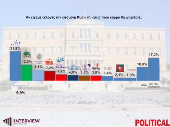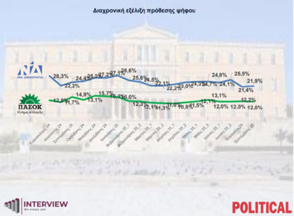 2 thoughts on “Δημοσκόπηση Interview μετά τις εξαγγελίες του Κ. Μητσοτάκη στη ΔΕΘ – Πτώση ποσοστών για ΝΔ και Πλεύση Ελευθερίας”