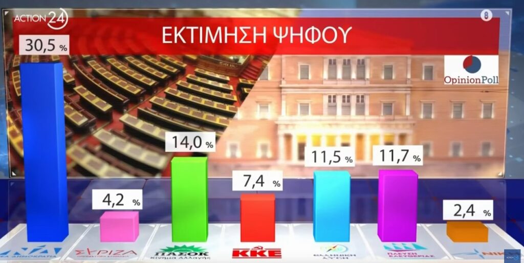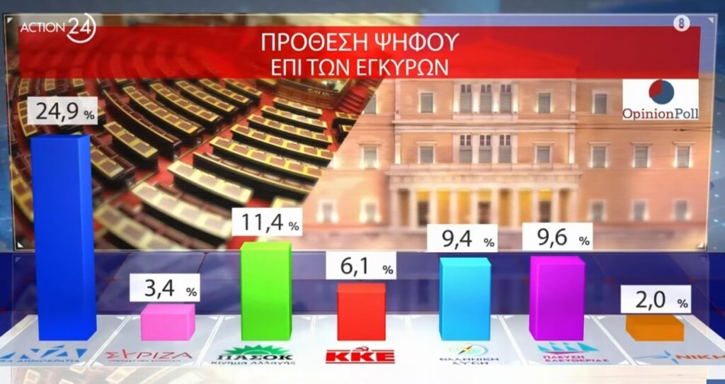 Πολιτική δημοσκόπηση για τον Action24 διενήργησε η Opinion Poll μετά τις εξαγγελίες του Πρωθυπουργού Κυριάκου Μητσοτάκη στην 89η Διεθνή Έκθεση Θεσσαλονίκης.