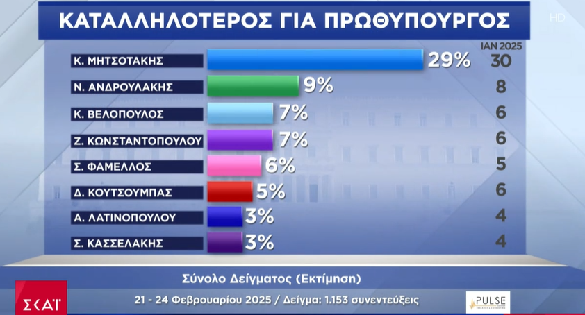 • Και οι πολιτικοί δείκτες: καταλληλότερος για πρωθυπουργός και πρόθεση ψήφου.
