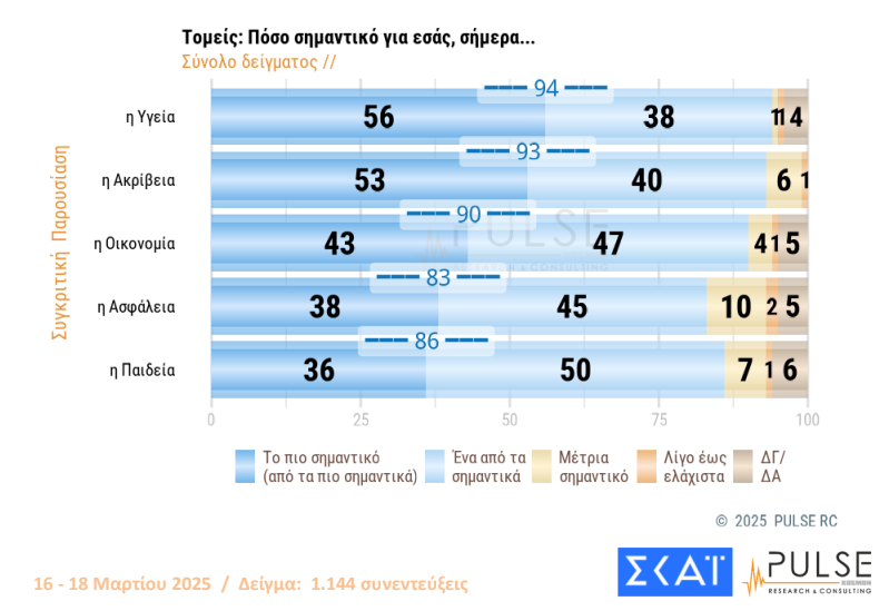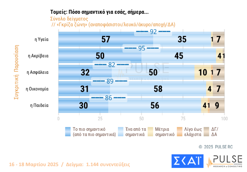 Η ακρίβεια-οικονομικά και η υγεία παραμένουν τα δύο βασικά θέματα που απασχολούν τους Έλληνες πολίτες, με ποσοστά άνω του 90%, δηλαδή σχεδόν τους πάντες.