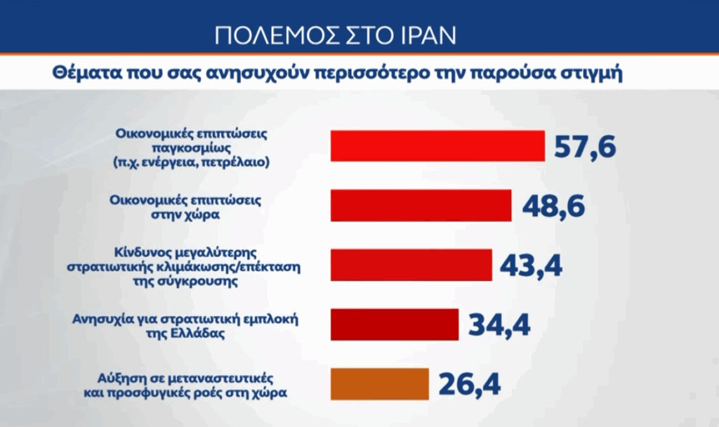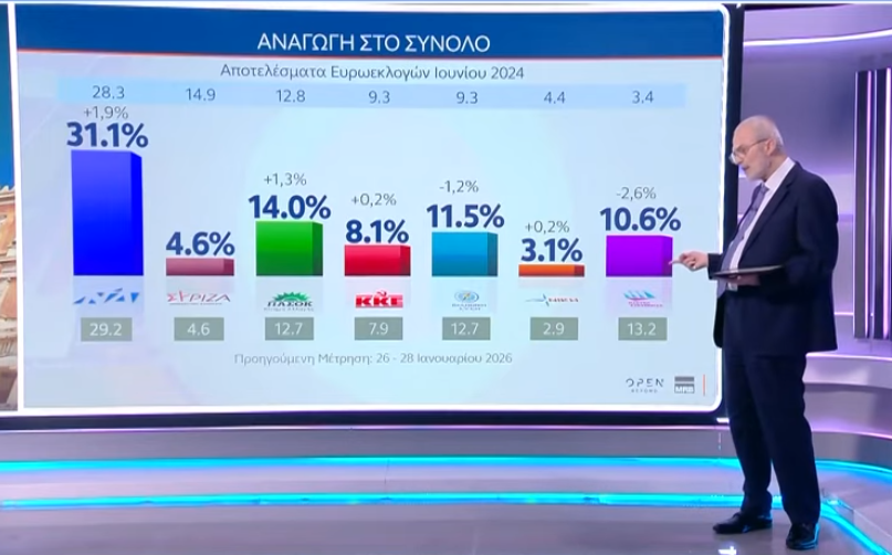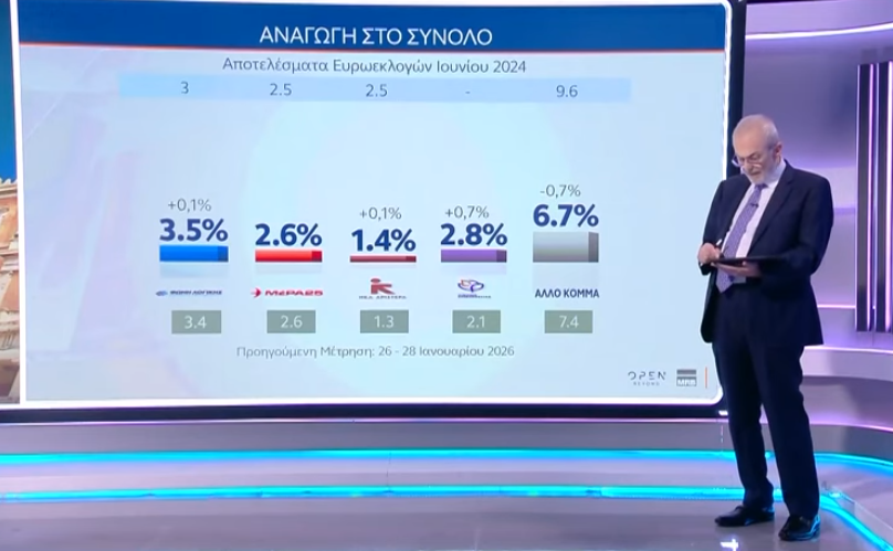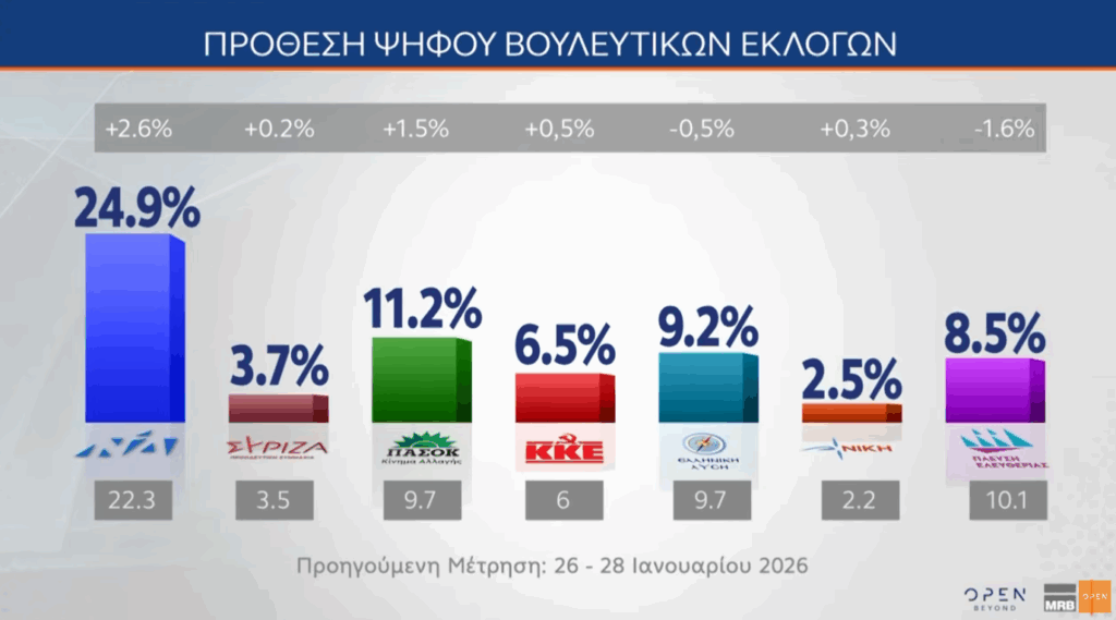 Ελλάδα: Ο πόλεμος στη Μέση Ανατολή και οι επιπτώσεις στην οικονομία της Ελλάδας, η στάση που πρέπει να κρατήσει η ελληνική κυβέρνηση αλλά και η πρόθεση ψήφου στις εκλογές αποτυπώνει η δημοσκόπηση της MRB για το κεντρικό δελτίο ειδήσεων του OPEN.