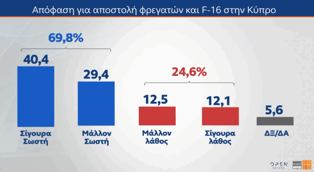 Αναφορικά με τις εξελίξεις στη Μέση Ανατολή οι πολίτες δηλώνουν ξεκάθαρα την αντίθεσή τους για την εμπλοκή της Ελλάδας στον πόλεμο ενώ συμφωνούν με την αποστολή στρατιωτικής βοήθειας στην Κύπρο.