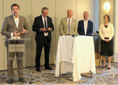Από αριστερά προς τα δεξιά: κ. Αλκης Βοσκαρίδης (Πρόξενος της Κύπρου), κ. Γιάννης Αρμεύτης (Δήμαρχος Λεμεσού), κ. Vincent Λανγκίγ (Δήμαρχος Θολονέτ, Αντιπρόεδρος του AMPM) και κα Clélia Chevrie (Πρέσβης της Γαλλίας στην Κύπρο)