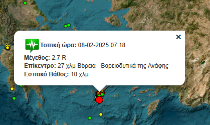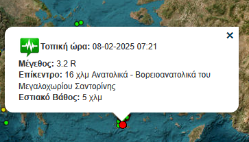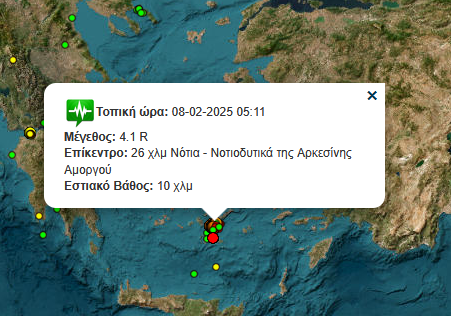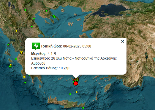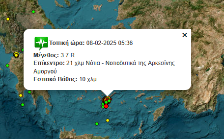 Συνεχίζεται η σεισμική δραστηριότητα στο θαλάσσιο χώρο μεταξύ Σαντορίνης και Αμοργού. Τα ξημερώματα του Σαββάτου (08/02) σημειώθηκαν 2 σεισμικές δονήσεις ΝΝΔ της Αρκεσίνης Αμοργού μεγέθους 4.1 της κλίμακας Ρίχτερ, με διαφορά 3 λεπτών μεταξύ τους.