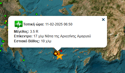 Συνεχίζονται και σήμερα το πρωί οι σεισμικές δονήσεις στην Αρκεσίνη Αμοργού, μετά τον σεισμό των 5.3 της κλίμακας Ρίχτερ που σημειώθηκε το βράδυ της Δευτέρας (10/02).