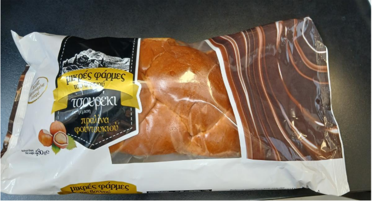 Ο Ε.Φ.Ε.Τ. και ειδικότερα η Περιφερειακή Διεύθυνση Δυτικής Ελλάδας, στο πλαίσιο του Προγράμματος «Επίσημος Έλεγχος για την Παρακολούθηση των Επιπέδων Προσθέτων Τροφίμων και Αρωματικών Ουσιών σε Τρόφιμα», προέβη σε δειγματοληψία τροφίμου με τα στοιχεία: “Τσουρέκι με γέμιση πραλίνα φουντουκιού – μικρές φάρμες του βουνού” με ημερομηνία ανάλωσης κατά προτίμηση πριν από τις 21/05/25 και αριθμό παρτίδας Lot 066A1, συσκευασίας καθαρού βάρους 480g, το οποίο παράγεται και συσκευάζεται στην Ελλάδα για λογαριασμό της ΜΑΡΚΕΤ ΙΝ Α.Ε.Β.Ε. που εδρεύει στη ΒΙ.ΠΑ. Μαρκοπούλου Μεσογαίας.