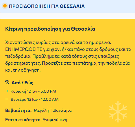 Πυκνές χιονοπτώσεις θα σημειωθούν στα ορεινά – ημιορεινά της κεντρικής και ανατολικής Μακεδονίας και της Θράκης, στα ορεινά της Ηπείρου, της Θεσσαλίας (ιδιαίτερα της δυτικής) καθώς και στα κεντρικά ορεινά.