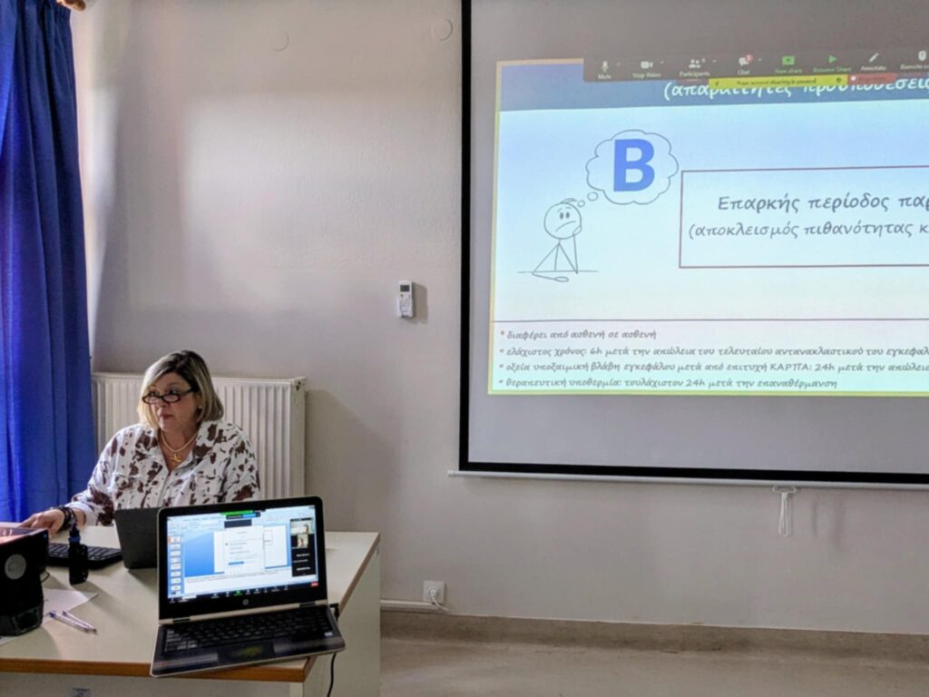 Μέλη της Ένωσης είχαν την ευκαιρία να παρακολουθήσουν ομιλίες και παρουσιάσεις από τον κ. Νίκο Καπραβέλο, Συντονιστή Διευθυντή της Β΄ ΜΕΘ, την κ. Μαρία Σίλελη, Παθολόγο – Εντατικολόγο, Διευθύντρια ΕΣΥ στη Β΄ ΜΕΘ, και την κ. Αλεξία Ταγαράκη, Τοπική Συντονίστρια Μεταμοσχεύσεων του Εθνικού Οργανισμού Μεταμοσχεύσεων στο Νοσοκομείο.