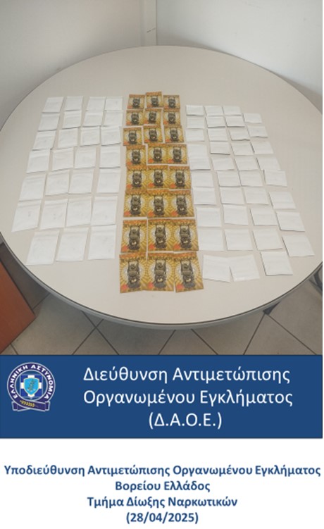 Από την Υποδιεύθυνση Αντιμετώπισης Οργανωμένου Εγκλήματος Βορείου Ελλάδος εντοπίστηκε χθες, Δευτέρα 28 Απριλίου 2025, κατάστημα υγειονομικού ενδιαφέροντος – ψιλικών στη Θεσσαλονίκη, εντός του οποίου βρέθηκαν και κατασχέθηκαν συσκευασίες που περιείχαν ναρκωτική ουσία.