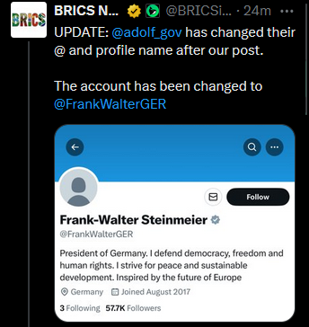 JUST IN: Adolf Hitler X account has an official government verification checkmark. pic.twitter.com/2M1hSnJr0c