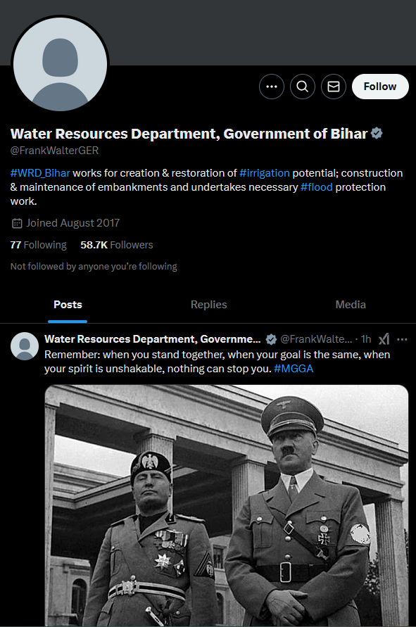 Μέσα σε λιγότερο από μία ώρα ο “Frank” άλλαξε και πάλι όνομα σε “Water Resources Department, Goverment of Bihar”!