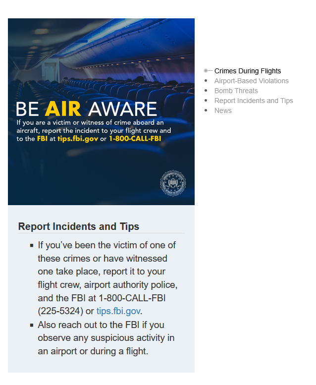 Γνωρίζατε ότι το FBI ερευνά εγκλήματα που διαπράχθηκαν σε αεροσκάφη, σε αεροδρόμια και σχετίζονται με αεροπορικά ταξίδια;
