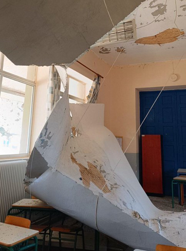 Από θαύμα γλύτωσαν οι μαθητές του 1ου Δημοτικού σχολείου στα Φιλιατρά, καθώς απουσίαζαν από την τάξη την ώρα που έπεσε ολόκληρη σχεδόν η οροφή.
