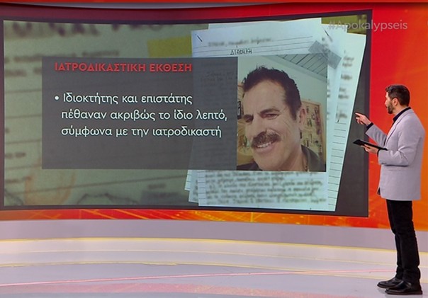 Όπως αποκάλυψε η εκπομπή “Αποκαλύψεις”, η ιατροδικαστής τοποθετεί τον θάνατο των δύο αντρών μέσα στο ίδιο λεπτό. Αυτό το συμπέρασμα έχει άμεση επίπτωση στη διαθήκη του 68χρονου θύματος και μπορεί να ρίξει νέο φως στα κίνητρα της δολοφονίας.
