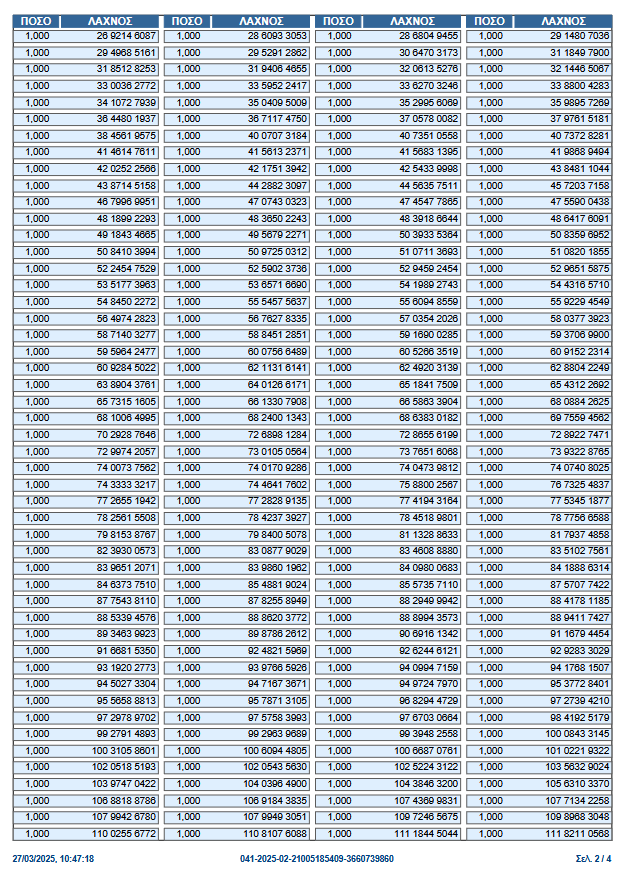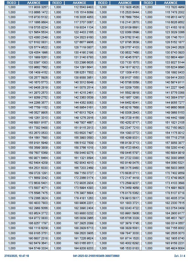 Υπενθυμίζεται δε πως τα ποσά που κερδίζουν οι τυχεροί είναι τα εξής: