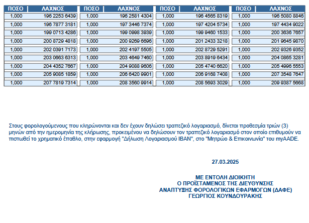 Οι φορολογούμενοι που κληρώνονται και δεν έχουν δηλώσει τραπεζικό λογαριασμό θα πρέπει να ενεργήσουν ως εξής:
