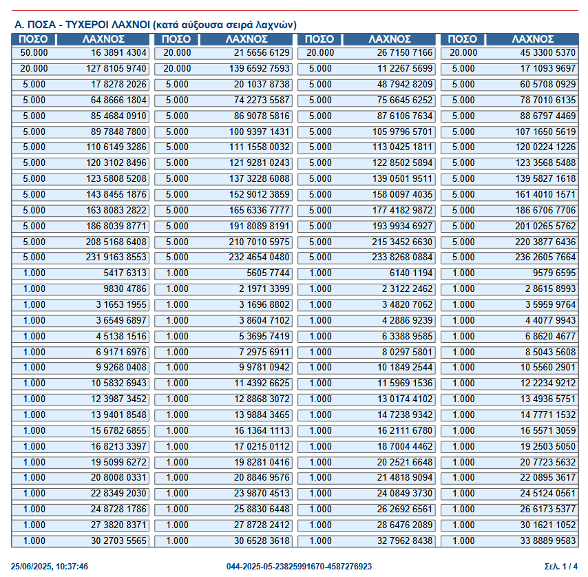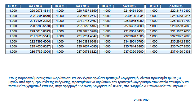 Ακολουθούν οι τυχεροί λαχνοί που κερδίζουν ποσά 1.000, 2.000, 5.000 και το μεγάλο ποσό των 50.000 ευρώ.