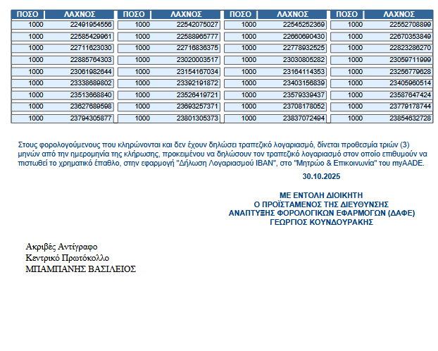 Δείτε αν είστε ένας από τους τυχερός στον σύνδεσμο της ΑΑΔΕ.