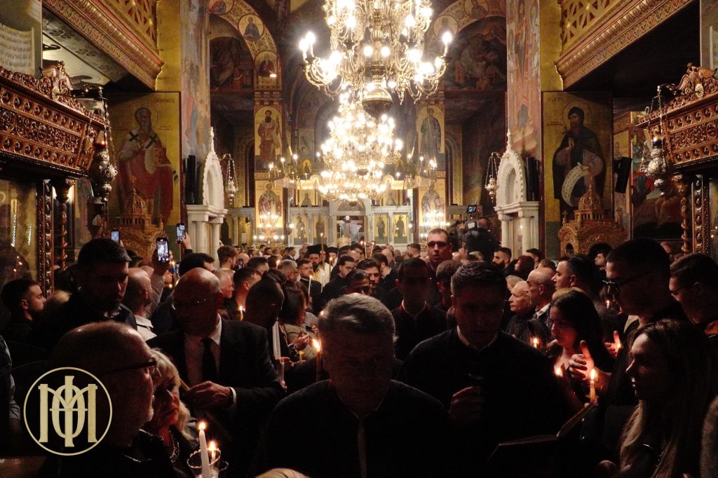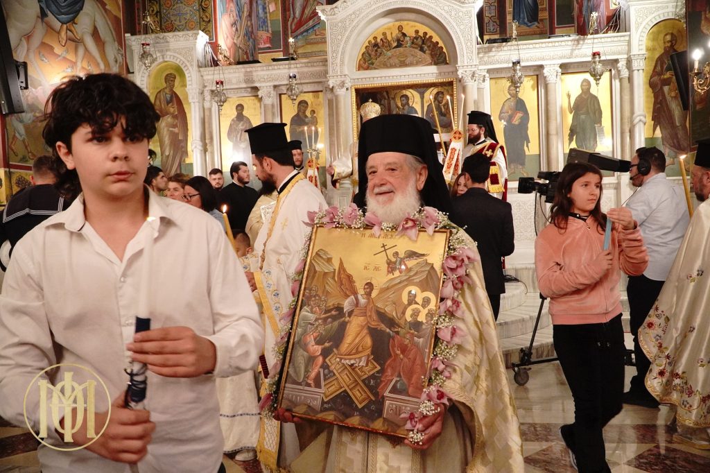 Στον Μητροπολιτικό Ιερό Ναό Αγίου Γρηγορίου Παλαμά Θεσσαλονίκης το βράδυ του Μεγάλου Σαββάτου 19 Απριλίου 2025 ετελέσθη η Ακολουθία της Αναστάσεως και στη συνέχεια ο Όρθρος και η Αναστάσιμη Θεία Λειτουργία από τον Παναγιώτατο κ. Φιλόθεο, συμπροσευχομένου του Σεβασμιωτάτου Μητροπολίτου Βελεστίνου κ. Δαμασκηνού, συλλειτουργούντων του Ιεροκήρυκος Αρχιμ. Δημητρίου Τζιαφά, των Ιερέων του Μητροπολιτικού Ιερού Ναού Αρχιμ. Μεθοδίου Αλεξίου, Αρχιμ. Ευσεβίου Νακόπουλου, Πρωτοπρεσβ. Παλαιολόγου Μάνου-Προϊσταμένου και Πρωτοπρεσβ. Αθανασίου Τσίγκου και των Διακ. Δημητρίου Ρουντκό και Ιακώβου Αθανασόπουλου. Στην Αναστάσιμη Θεία Λειτουργία, η οποία τελείωσε στις 2.00 π.μ. παρέμεινε και συμμετείχε πλήθος χριστιανών, οι οποίοι κοινώνησαν όλοι τα Άχραντα Μυστήρια.