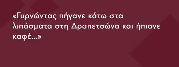 Στις 11 το πρωί βρίσκονται μαζί στην Δραπετσώνα για καφέ.