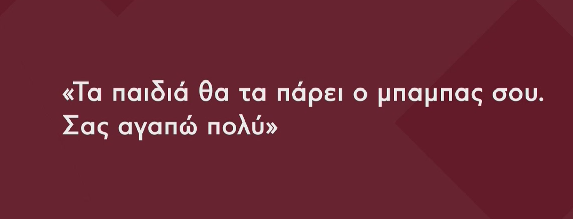 “Είχε προγραμματισμένο ραντεβού 10-12 στο Γεννηματά.Γιατί άκουγε έναν θόρυβο στον ώμο μου και πήγε να το ελέγξει. Μετά πήγαν με τον πατέρα μου στα λιπάσματα για καφέ. Γυρίσανε γύρω στις μία το μεσημέρι και ο πατέρας μου του λέει να κατέβει για φαγητό. Εμένα με ενημέρωσε ότι θα περάσει και μου έστειλε αυτό το μήνυμα στις 13:56…