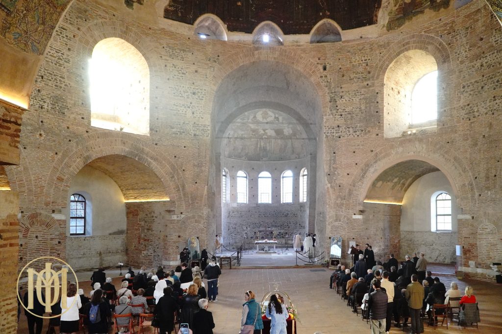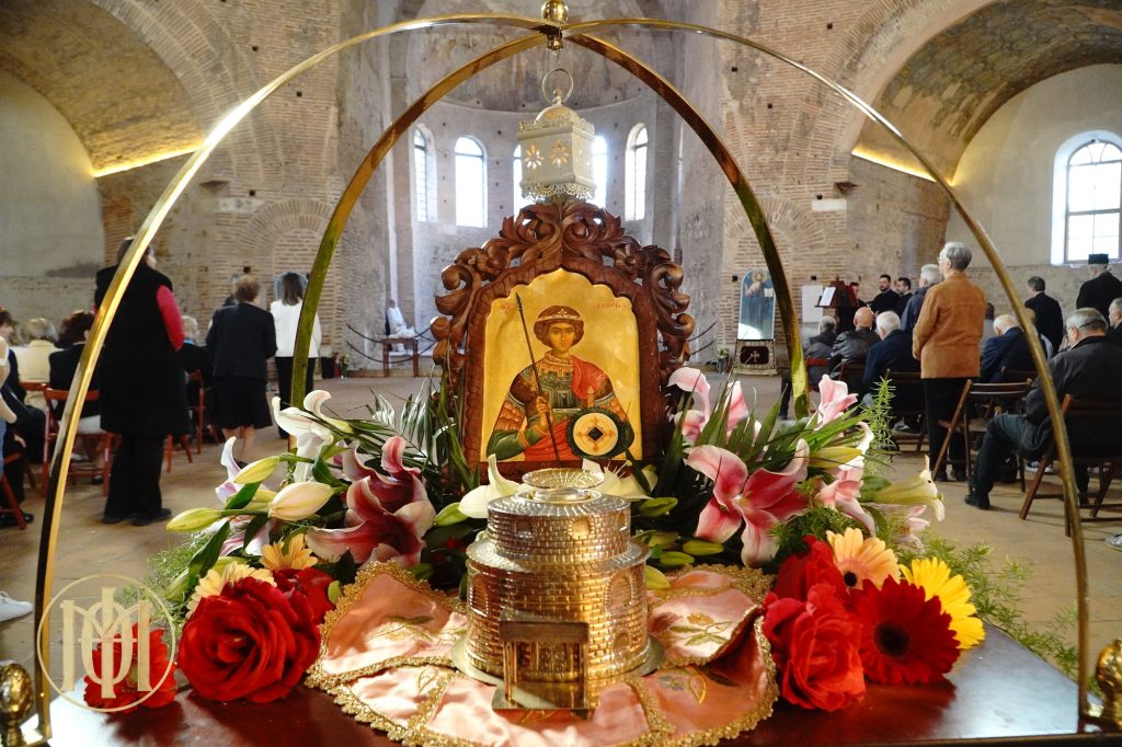 Με ιδιαίτερη λαμπρότητα, πανηγύρισαν οι Θεσσαλονικείς, την μνήμη του αγίου Μεγαλομάρτυρος Γεωργίου του Τροπαιοφόρου, την Τετάρτη της Διακαινησίμου 23 Απριλίου 2025 στον ομώνυμο περίκεντρο (Ροτόντα) Ιερό Ναό στο κέντρο της πόλης πλησίον της αψίδας του Γαλερίου.
