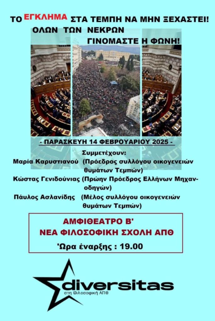 Η εκδήλωση είναι ανοιχτή στο κοινό και θα συζητηθούν τα αίτια και οι συνέπειες της τραγωδίας των Τεμπών στην Ελλάδα.
