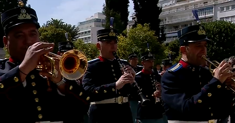 Μετά την κατάθεση του στεφάνου ανακρούεται ο Εθνικός Ύμνος.