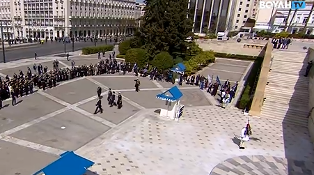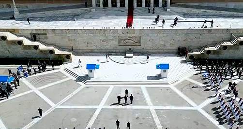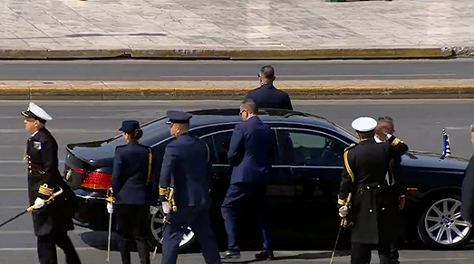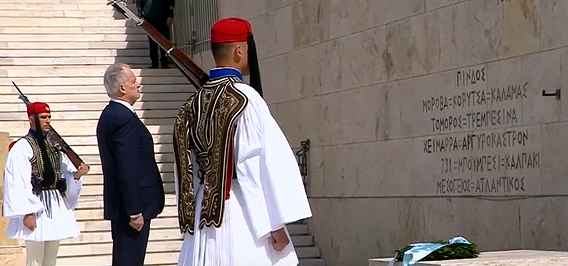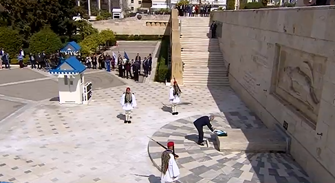 Ο ΠτΔ κ. Κωνσταντίνος Τασούλας λίγο πριν τις 12 το μεσημέρι αποχώρησε από το κτήριο της Βουλής και κατευθύνθηκε προς το μνημείο του Αγνώστου Στρατιώτη, όπου κατέθεσε δάφνινο στεφάνι.
