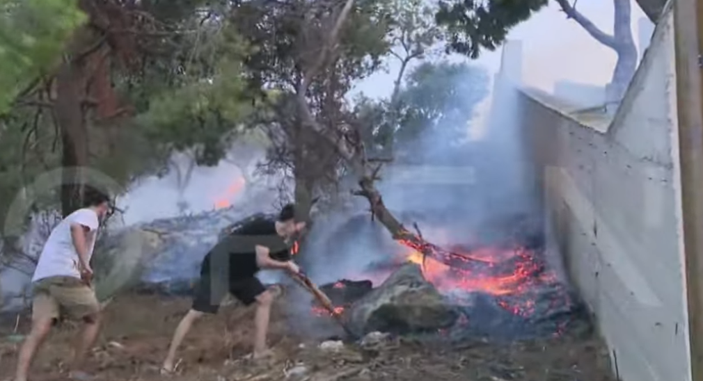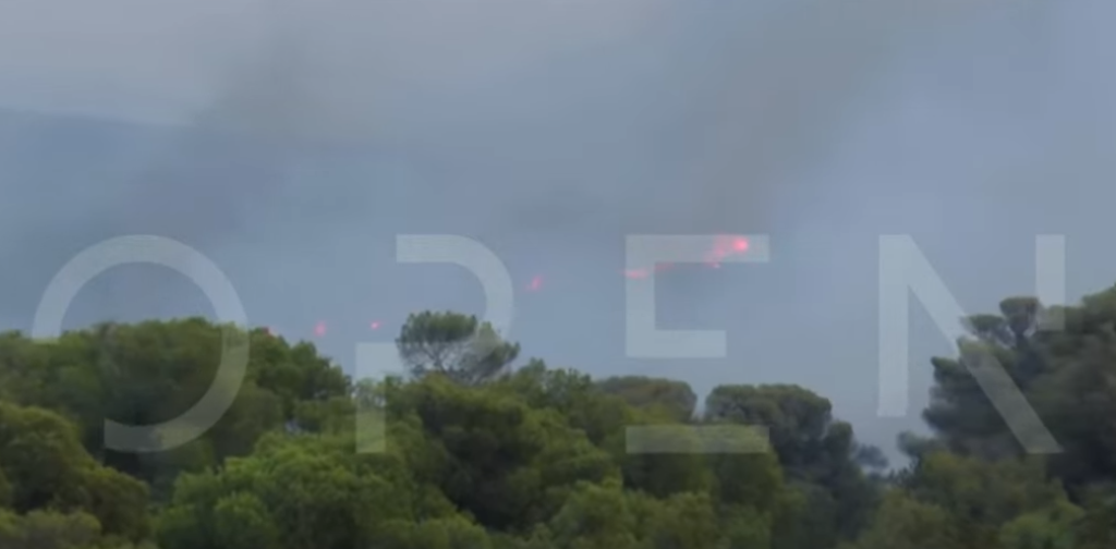 Σύμφωνα με τον αντιδήμαρχο Σαρωνικού, Σταύρο Πετρόπουλο, η φωτιά έχει μπει μέσα στην περιοχή Θυμάρι.