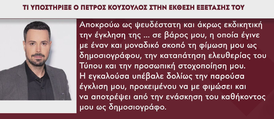 Ο Πέτρος Κουσουλός, την Μεγάλη Τρίτη (15/04) και κατά τη διάρκεια της εκπομπής “OPEN ΤΩΡΑ” αναφέρθηκε στην νομική του περιπέτεια: