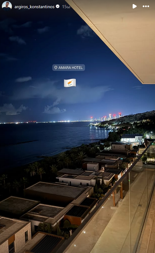 Μάλιστα ο Αργυρός είχε αναρτήσει στο Instagram φωτογραφία από το ξενοδοχείο διαμονής του στην Λευκωσία.