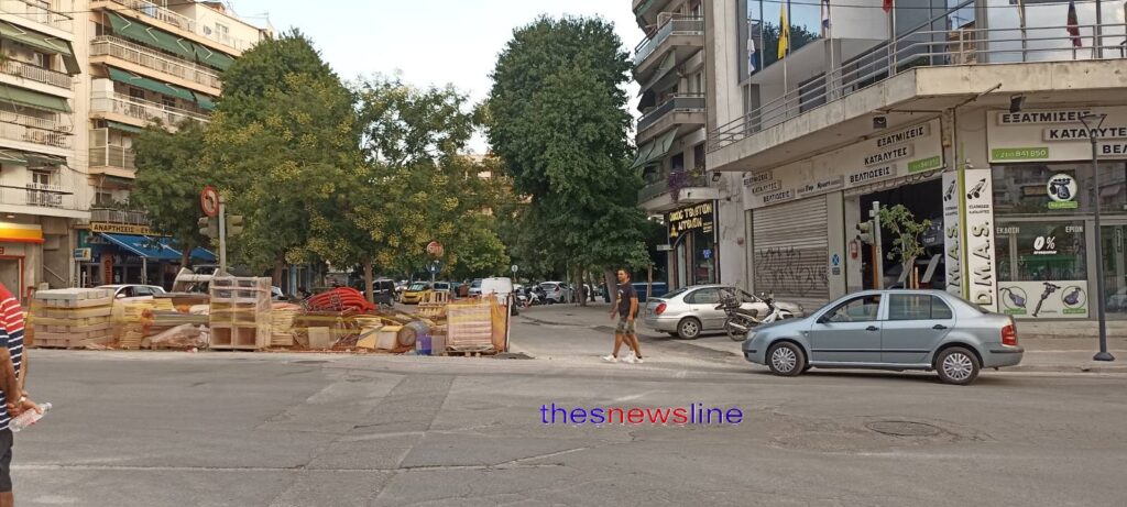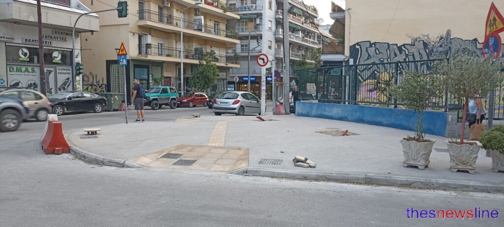 Συνεχίζονται με αργούς ρυθμούς τα έργα ανάπλασης πεζοδρομίων στην ανατολική Θεσσαλονίκη και συγκεκριμένα επί της οδού Μάρκου Μπότσαρη.