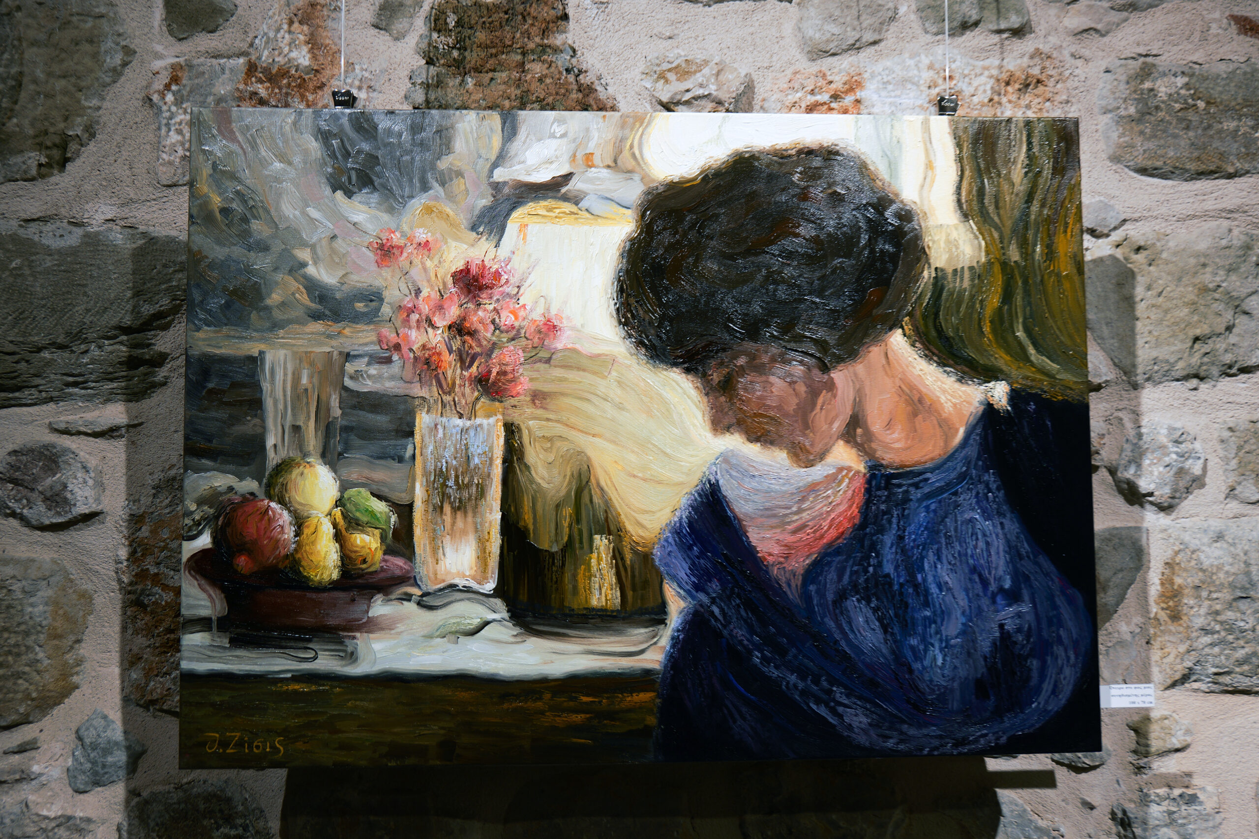 Cette nouvelle série d’œuvres de Thanasis Zisis, intitulée « Après les physiques », se distingue par son intensité et sa palette chromatique caractéristique, à travers lesquelles il tente de rendre l’intensité intérieure de l’expérience humaine et les dimensions invisibles de l’existence. Sur les toiles du peintre, figures humaines, espaces intérieurs et éléments du monde naturel se transforment en images transcendantales, grâce à des textures riches et une utilisation audacieuse de la couleur. Le coup de pinceau rugueux et l’application épaisse, presque sculpturale, de la peinture constituent les principaux outils expressifs de l’artiste. Les formes, souvent déformées ou délibérément ambiguës, s’éloignent de la représentation « étroite » pour aboutir à un résultat onirique et métaphysique. À travers cette peinture, l’œuvre devient un champ de réflexion, une tentative permanente de compréhension du monde qui nous entoure, non tel qu’il apparaît, mais tel qu’il est vécu et conçu.