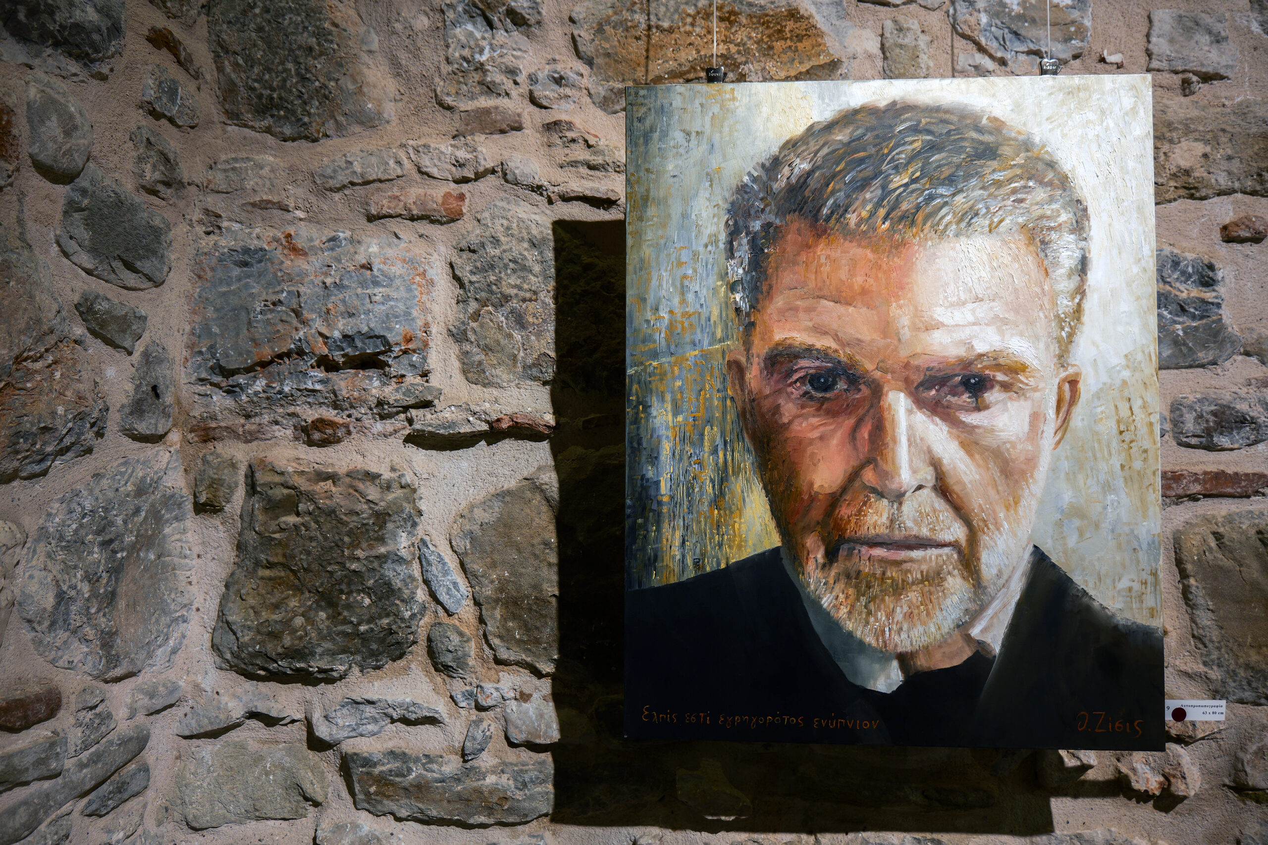 Αυτοπροσωπογραφία του καλλιτέχνη από το 1984, ανήκει στην Ιδιωτική Συλλογή Πορτραίτων Ελλήνων Εικαστικών του Αρχείου Νεοελληνικής Τέχνης “Σοφία Λασκαρίδου” του συλλέκτη Δημήτρη Παπαγεωργόπουλου.