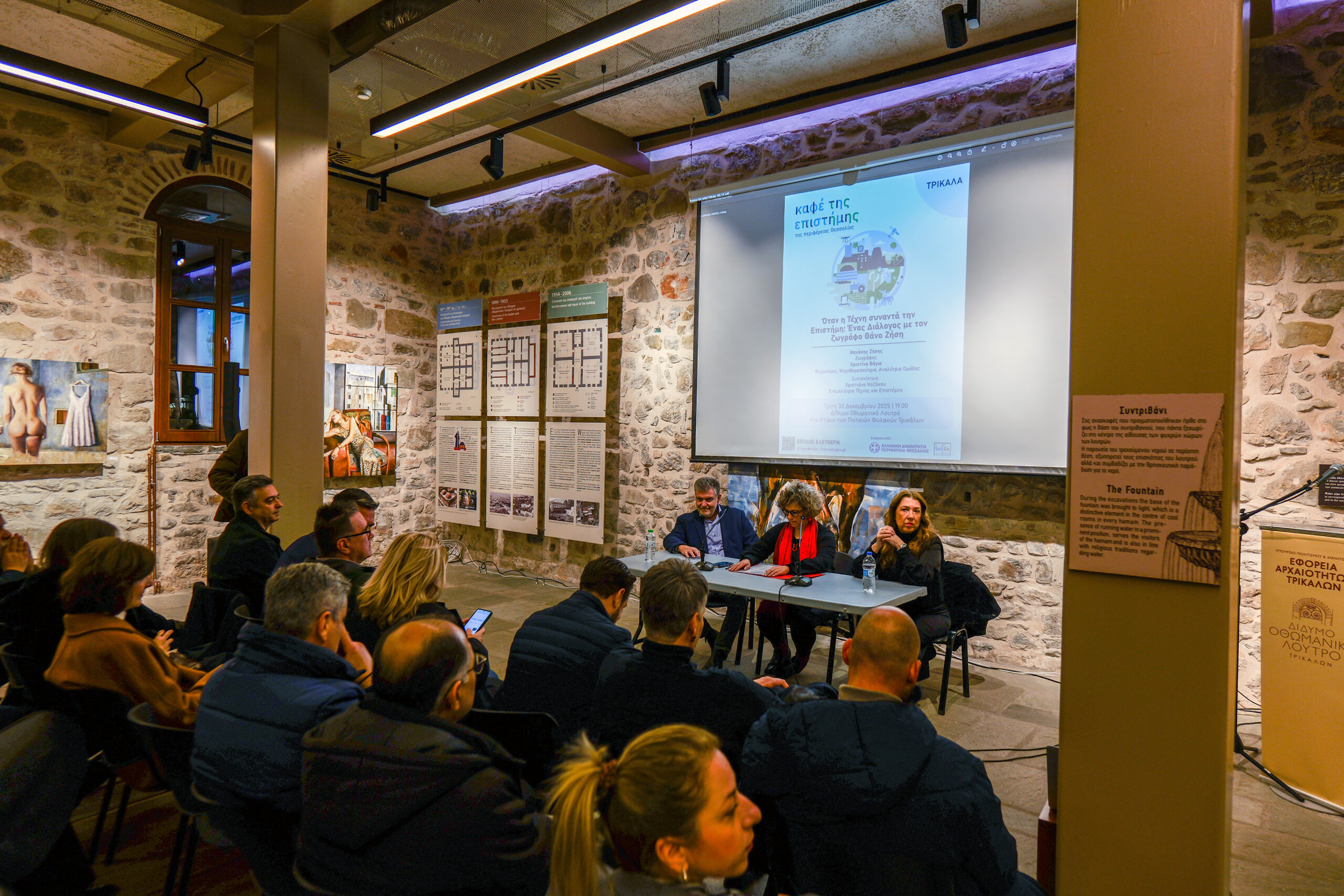 L’exposition a été accueillie dans le “Didymo Othomaniko Loytro”, un lieu qui allie l’architecture ottomane du XVIe siècle à des actions culturelles contemporaines et qui a laissé une empreinte particulière sur la carte culturelle de Trikala.