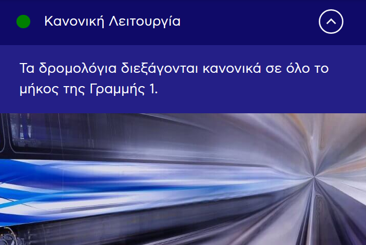 “Σας ενημερώνουμε ότι οι σταθμοί «Νέος Σιδηροδρομικός Σταθμός», «Βενιζέλου» «Σιντριβάνι» και «Πανεπιστήμιο» επαναλειτουργούν και τα δρομολόγια διεξάγονται κανονικά σε όλο το μήκος της Γραμμής 1″.