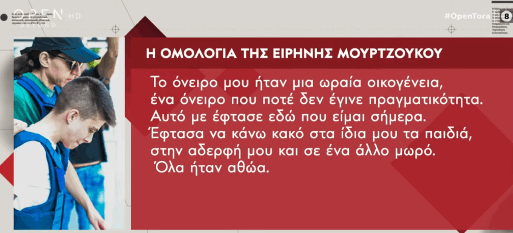 Η δικηγόρος της Κατερίνας, Βασιλική Ντζελβέ, μιλώντας στην εκπομπής “OPEN ΤΩΡΑ” το μεσημέρι της Πέμπτης (10/07) σχολίασε την ομολογία της Ειρήνης Μουρτζούκου τονίζοντας ότι αποτελεί μέρος της υπερασπιστικής γραμμής που θα ακολουθηθεί. Δηλαδή ότι θα τεθεί ο ψυχιατρικός/ψυχολογικός παράγοντας ώστε η δράστης να “πέσει στα μαλακά”.