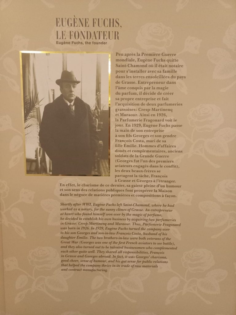 Λίγο μετά τον Πρώτο Παγκόσμιο Πόλεμο, ο τότε συμβολαιογράφος Eugène Fuchs και η οικογένειά του εγκατέλειψαν το Saint-Chamond για να εγκατασταθούν στην ηλιόλουστη πόλη Grasse της νοτιοανατολικής Γαλλίας. Τον Eugène κέρδισε σύντομα η μαγεία του αρώματος και αποφάσισε να δημιουργήσει τη δική του εταιρεία με την αγορά δύο αρωματοποιίων, των Cresp-Martinenq και Muraour. Έτσι η Parfumerie Fragonard άνοιξε τις πόρτες της το 1926.