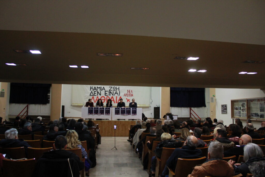 Οι δράσεις κορυφώθηκαν με την πολιτική εκδήλωση στο Εργατοϋπαλληλικό Κέντρο Θεσσαλονίκης, με θέμα το προσφυγικό και τις πολιτικές της κυβέρνησης Μητσοτάκη στο συγκεκριμένο πεδίο. Με τη συμμετοχή του διασώστη Ιάσονα Αποστολόπουλου, του καθηγητή Κωστή Τσιτσελίκη, της δημοσιογράφου Μίκας Αγραφιώτου, και του Γραμματέα της Νέας Αριστεράς Γ. Σακελλαρίδη αναδείχτηκε η ανάγκη για μια εναλλακτική πολιτική που υπερασπίζεται την ανθρώπινη ζωή πάνω από τα σύνορα και τα κέρδη.